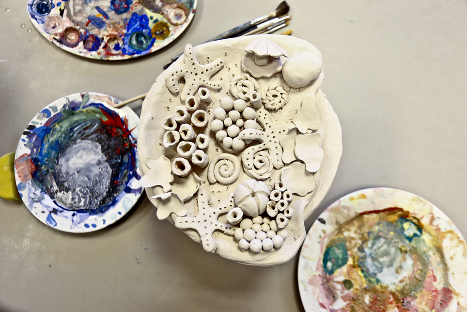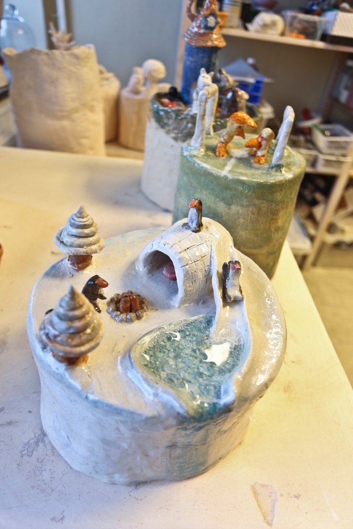 Molly (13) har valgt å lage en scene fra livet under vann. Dioramaet hennes er ferdig utformet og råbrent, og er nå klar for farger. Når den er ferdig glasert, blir den brent på 1260 grader.