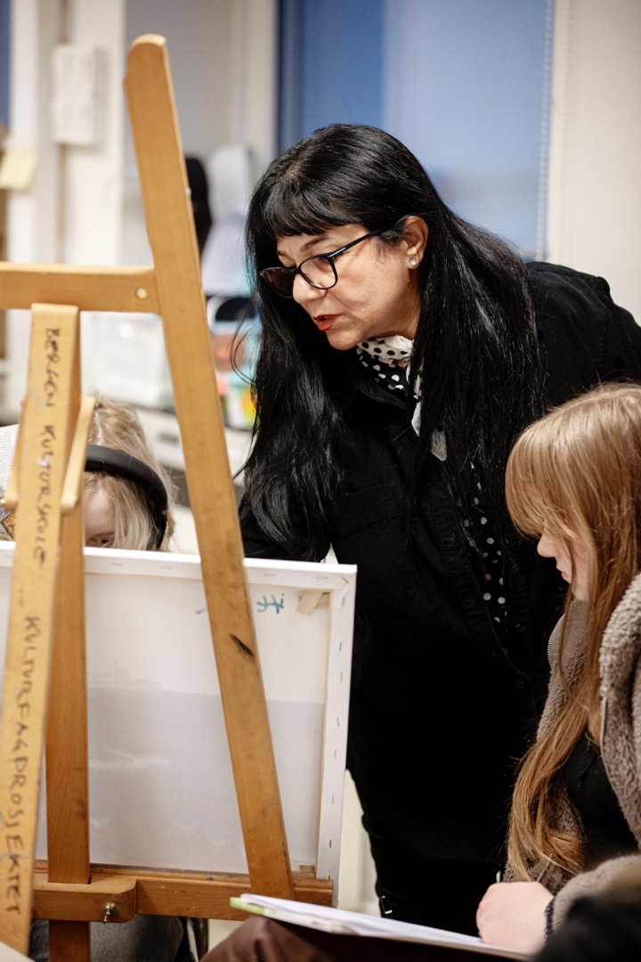 I klasserommet hennes er det helt stille. Uten en lyd, og med rolige penselstrøk, sitter åtte elever dypt konsentrert foran hvert sitt